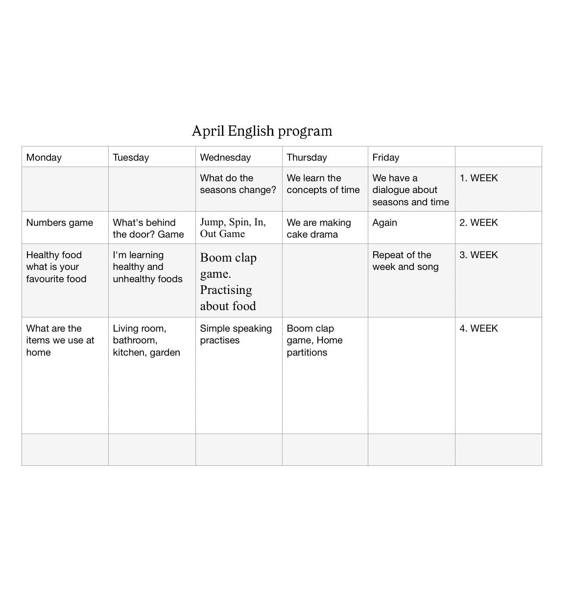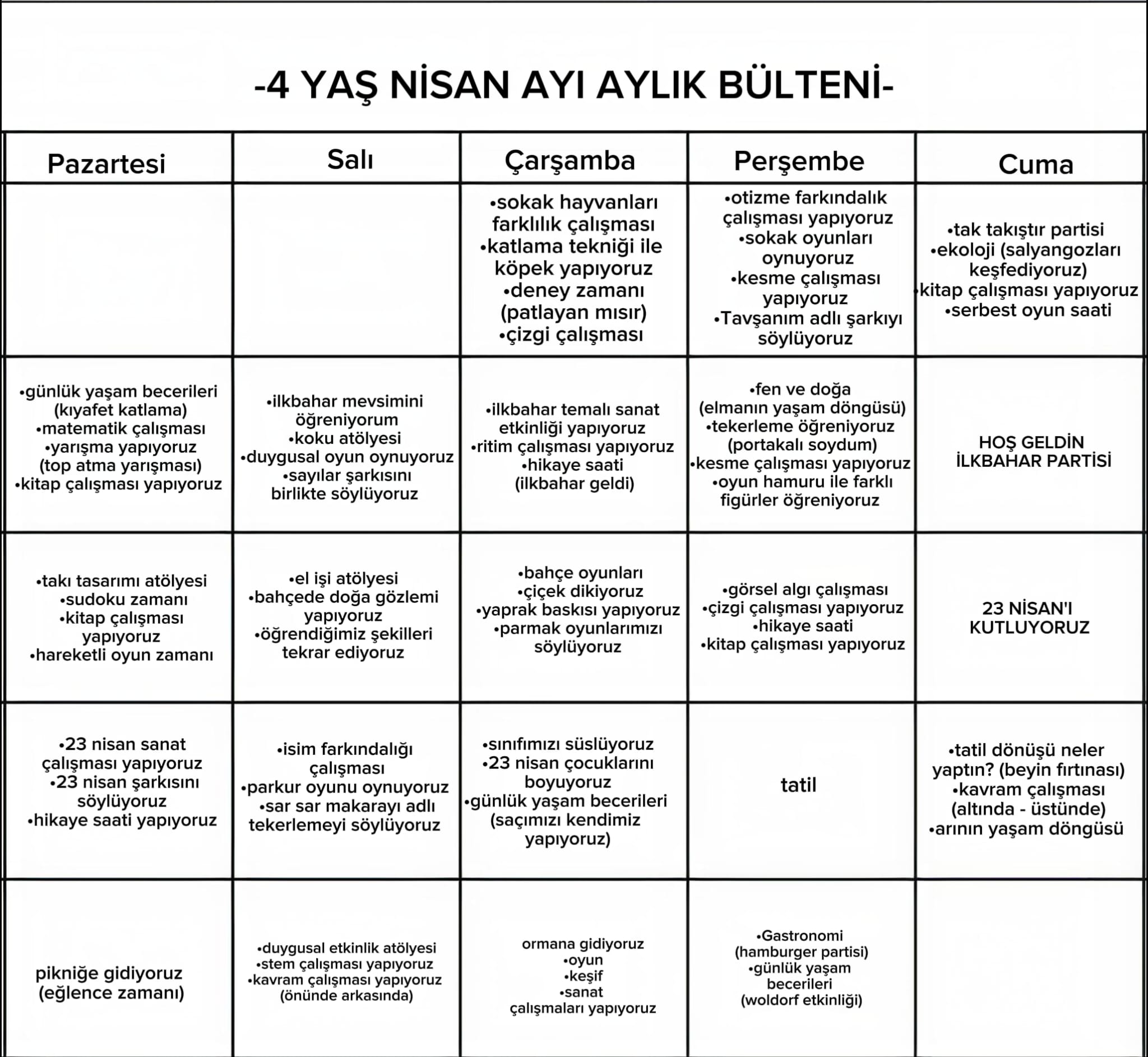 NİSAN AYI EĞİTİM PLANI